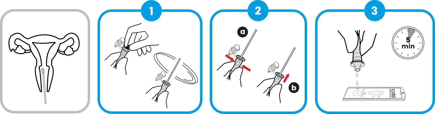 Toda Amniodiag® 5 cassette est un test immunochromatographique sur cassette permettant de détecter la rupture de membrane fœtale par la mise en évidence de la protéine IGFBP-1 provenant du liquide amniotique de la femme enceinte. Le test utilise une paire d’anticorps monoclonaux qui détectent la protéine à partir d’un écouvillonnage vaginal.